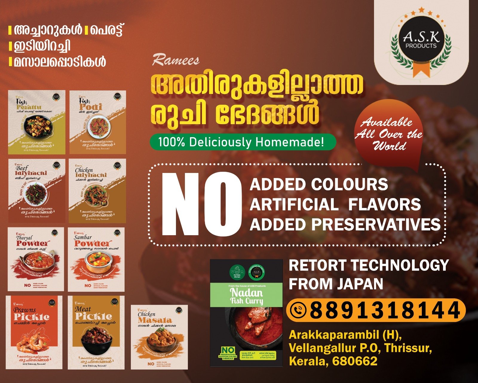 • Welcome to ASK Products, your trusted source for homemade goodness that feels just like home. Based in Thrissur, Kerala, our journey began with a simple love for traditional, handmade products — created using natural ingredients, time-tested recipes, and a whole lot of care.